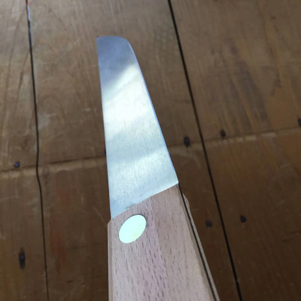 Dexter Russell #1377 7″ wide boning knife. Carbon steel blade with riveted beech wood handle. Made in USA.