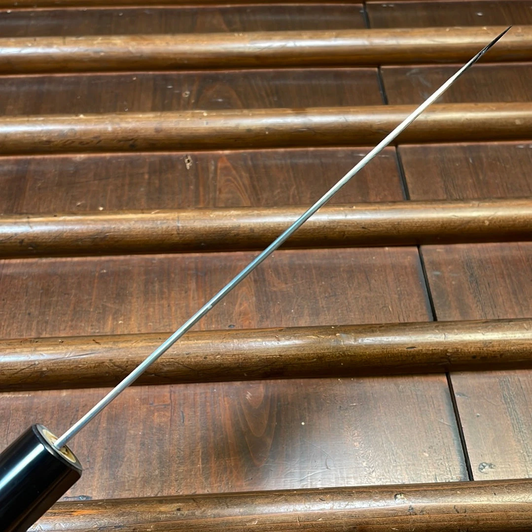 Monosteel Kanto style santoku made with a finely finished proprietary stainless steel and magnolia wa-handle.
