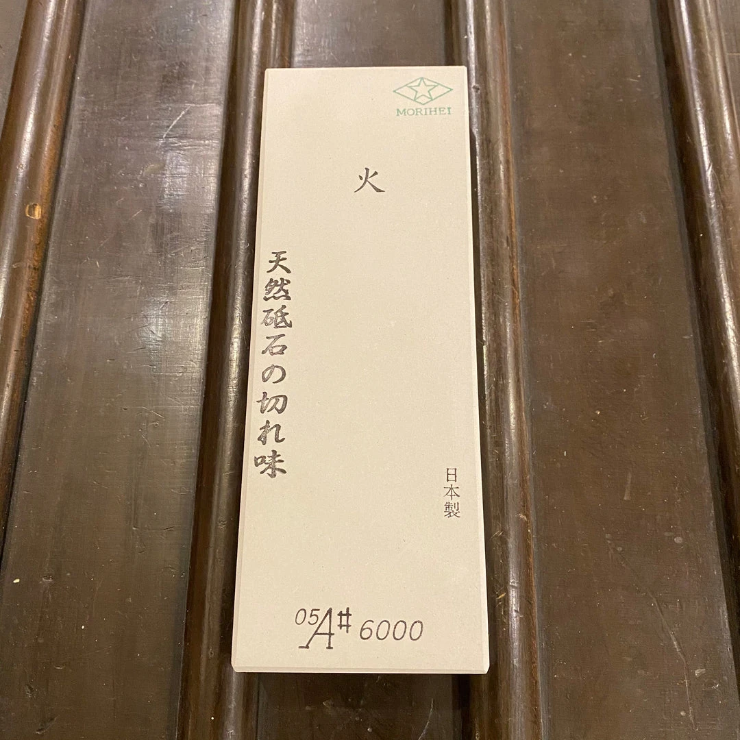 Morihei Hishiboshi 6000 grit stone is a hazy fine finisher made with natural and man made abrasives formulated for Morihei to his specifications to cut like a natural stone with the consistency of a synthetic. Thisย semi soft stone has an easy going feel, great for wide bevel polishing or narrow double bevel work, it does great in a progression with other Morihei stones. Aside from creating a nice edge these make a beautiful contrast between hard edge forming hagane layer steel and softer jigane cladding.ย Like a natural stone these are best not soaked although they will not suffer as quickly as a natural from soaking. Just soft enough to generate itโs own mud with sharpening this stone does not require a nagura typically.