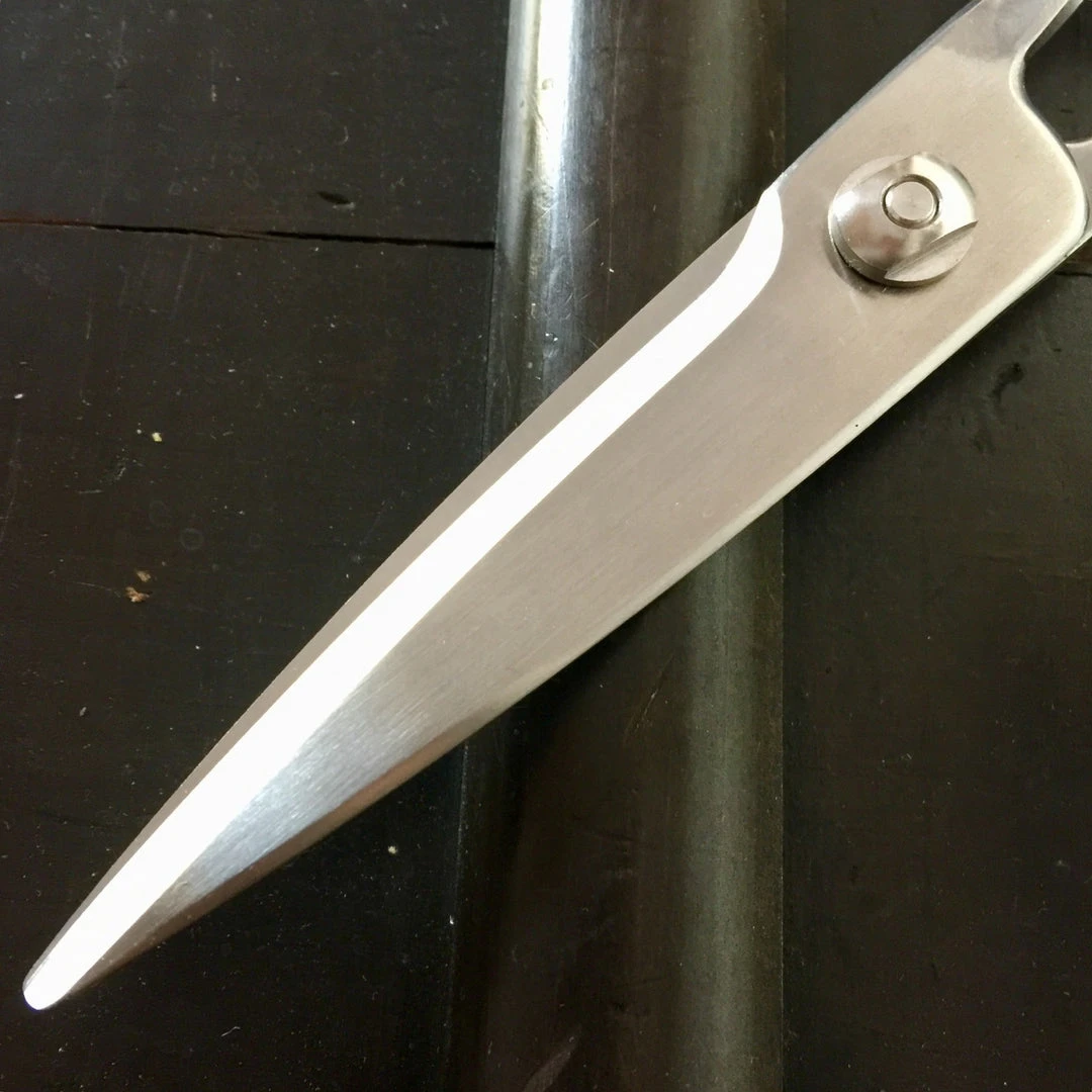 Minimalist design with ergonomic contours makes for a lower-profile kitchen scissor with a sharp edge and a smooth cutting action.