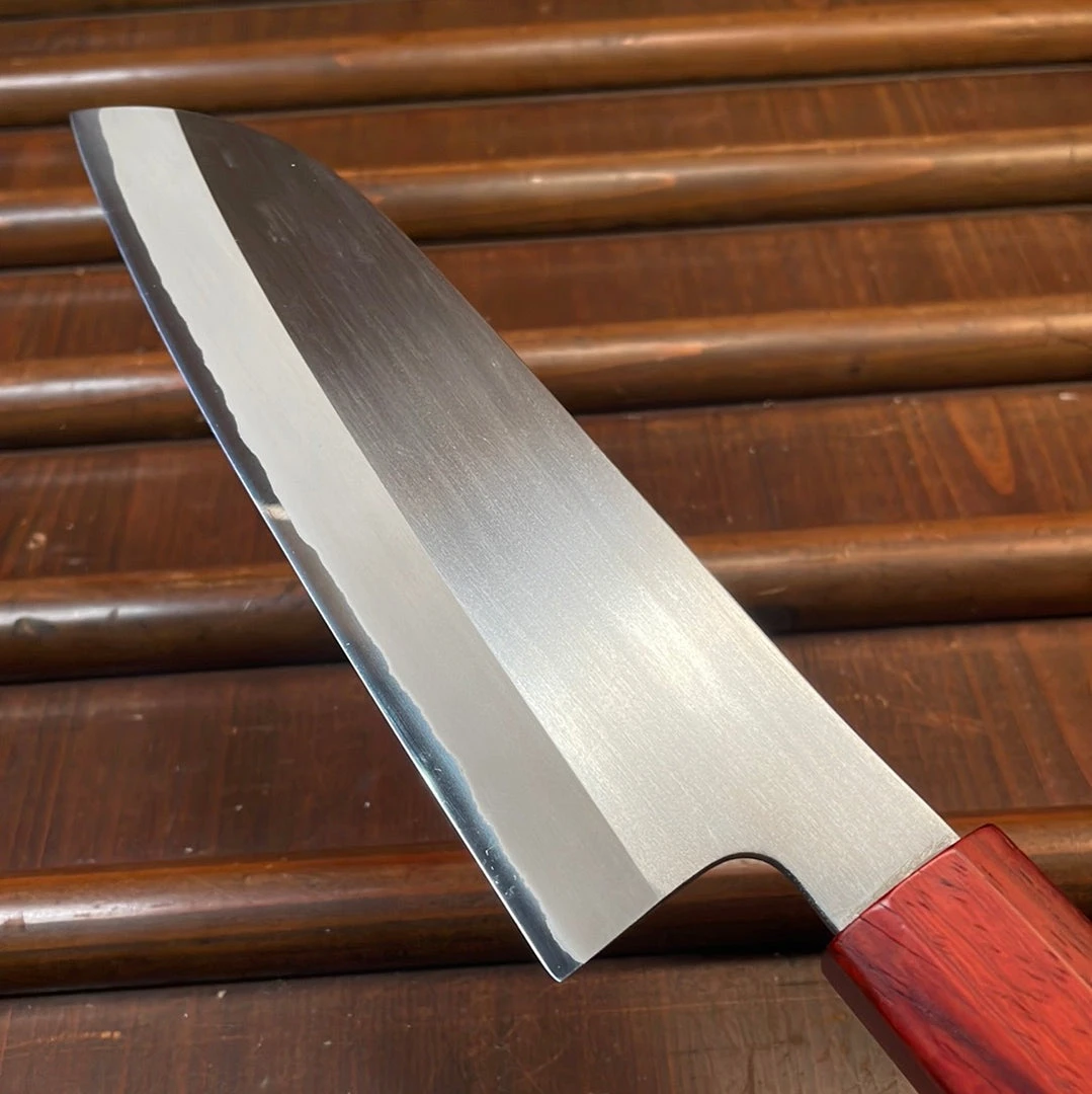 These are forged in stainless clad shirogami 2 with a mIgaki matte polishedย finish, they have the classic Sanjo geometry with strong distal taper and a square leaning oak andย bubinga octagonal handle, also made in Sanjo specifically for this series.