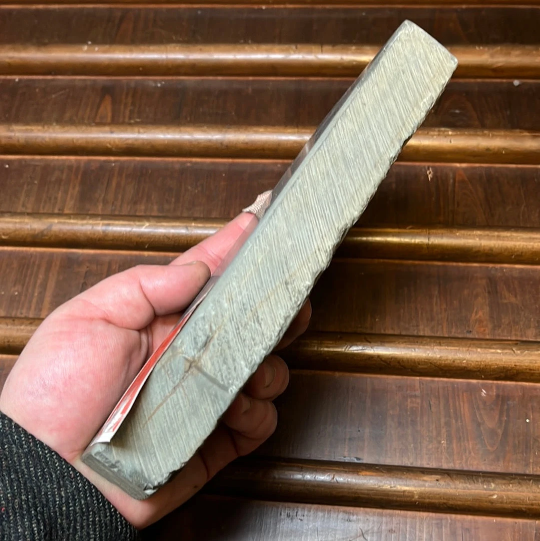 Old stock stone from the Tomaeย strata of the Ohira mine. Hard and a bit scratchy with too much pressure, it needs to be finessed to create a very bright sub mirror finish, I found that I couldnt avoid getting a very bright but slightly scratchy looking finish, not deep scratches but not super mellow looking. I think better can be coaxed out of it with a more thorough polishing of the surface of the stone however.ย