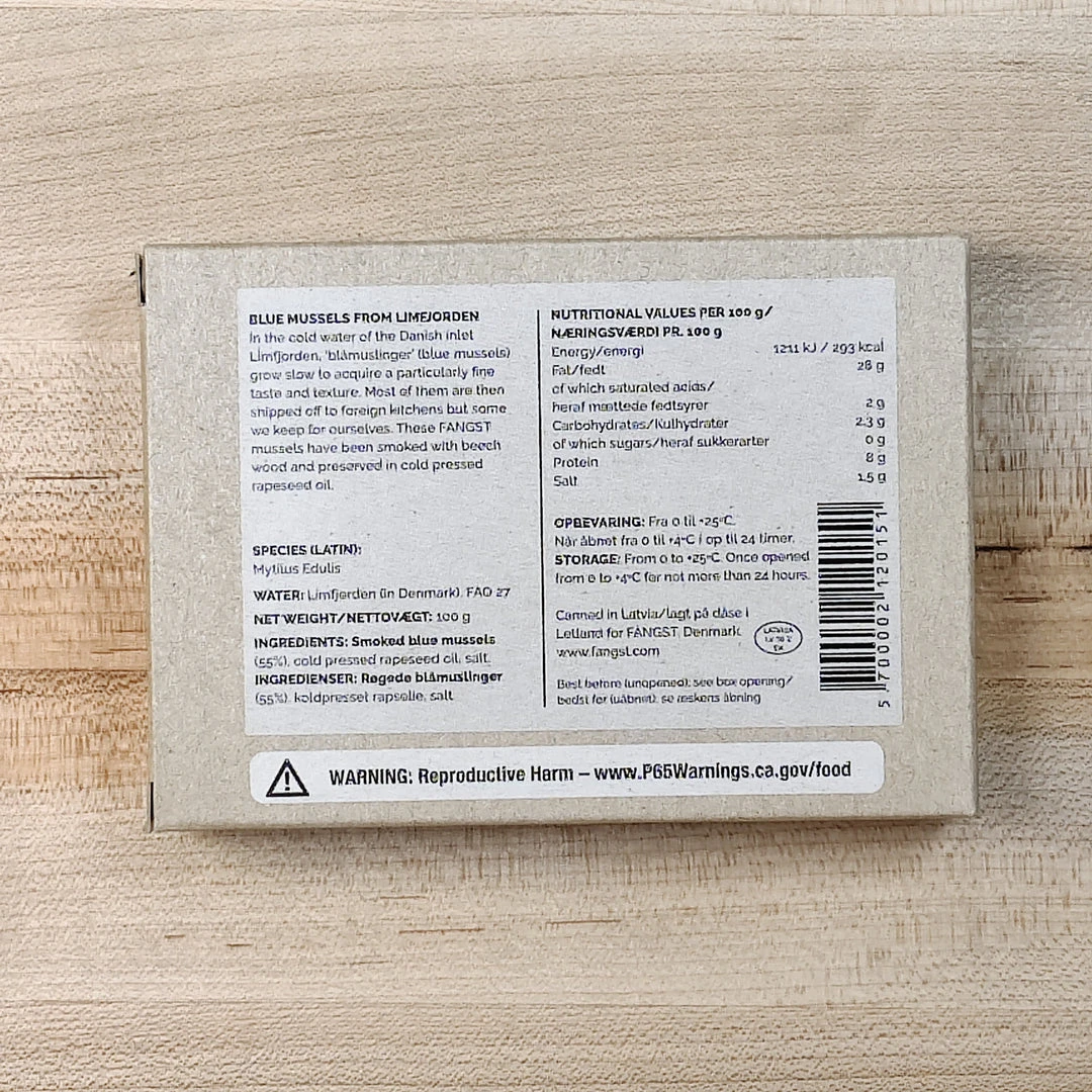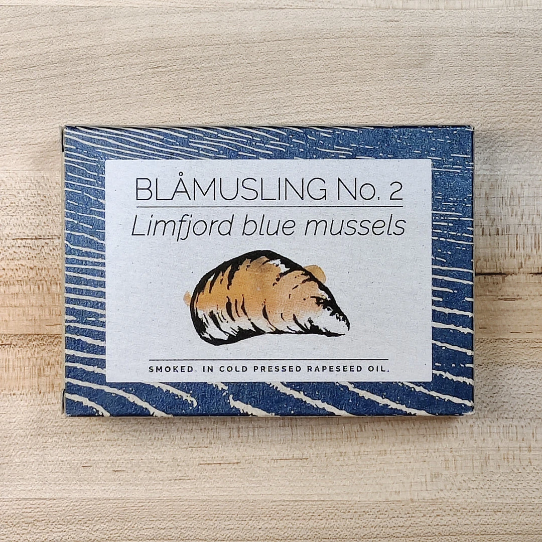 In the cold water of the Danish inlet Limfjorden, ‘blåmuslinger’ (blue mussels) grow slow to acquire a particularly fine taste and texture. Most of them are then shipped off to foreign kitchens but some we keep for ourselves. These FANGST mussels have been smoked with beech wood and preserved in cold pressed rapeseed oil.