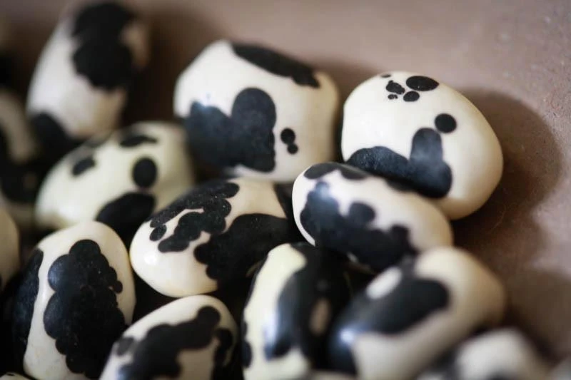 A really lovely cousin to the Anasazi bean, Vaquero have intriguing black and white markings. The flavor is somewhat like the Anasazi but it’s a little lighter. The real fun is the inky, black pot liquor. It looks cool and tastes great.